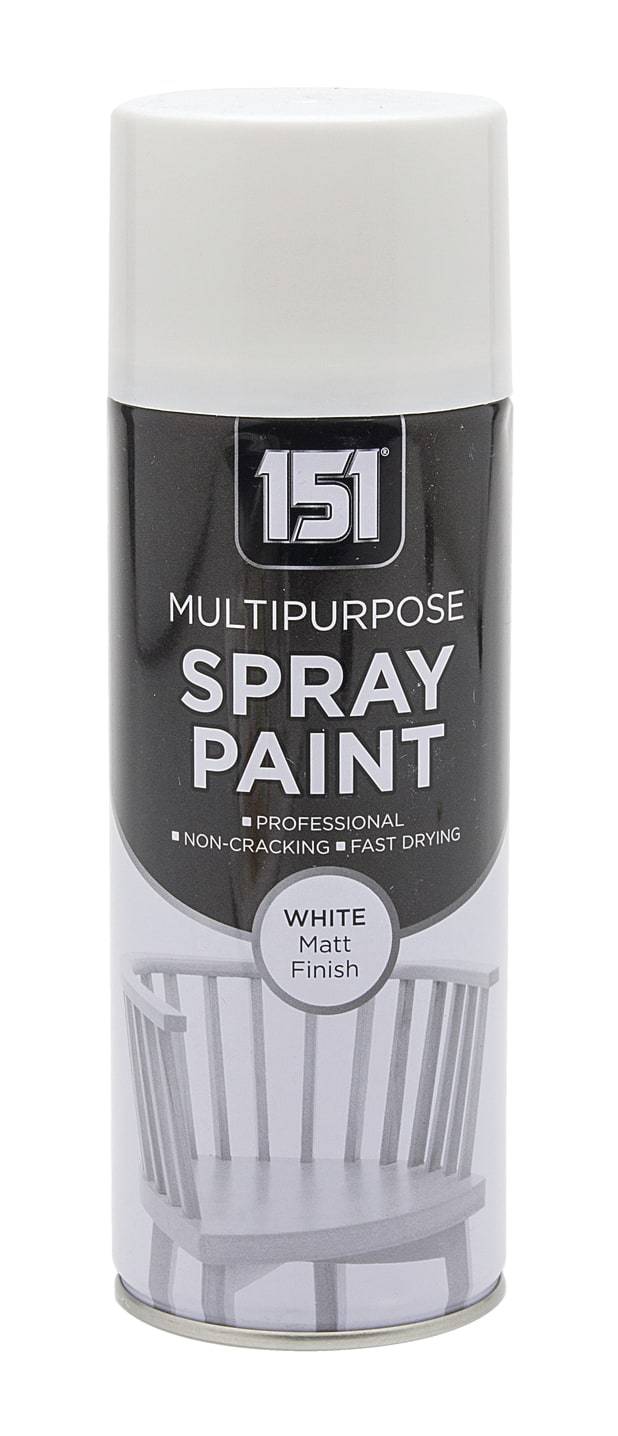 A white matt spray paint designed to provide a flat, non-shiny finish on suitable surfaces in decoration or repair work. It is useful for furniture updates, craft projects, fixtures, and general DIY tasks where a softer and more understated white finish is preferred. The aerosol can makes it practical for quick coating on small to medium items.