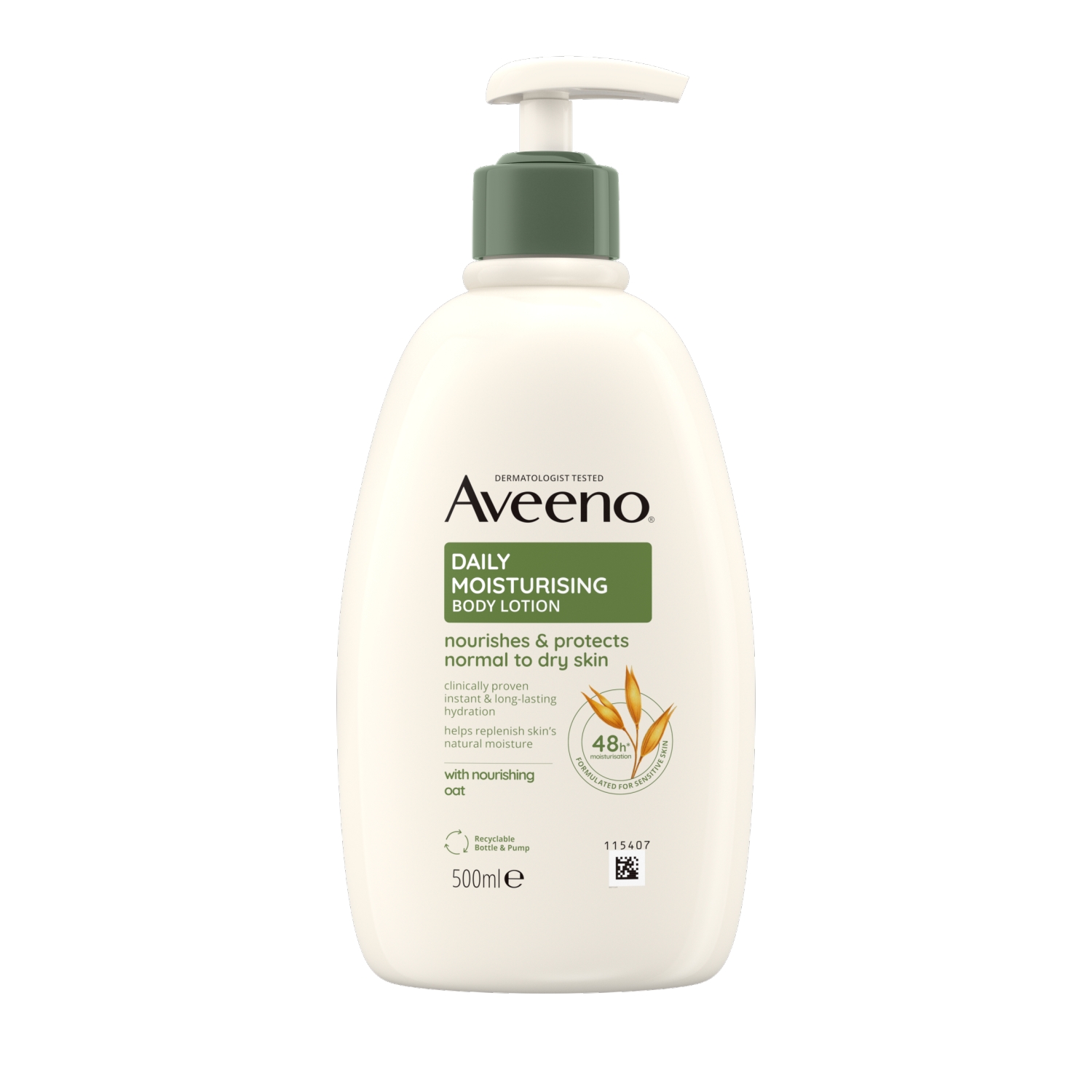 Aveeno Daily Moisturising Lotion 500ml is a larger size of the popular body lotion, clinically proven to improve the health of dry skin in one day and provide 24-hour hydration.
