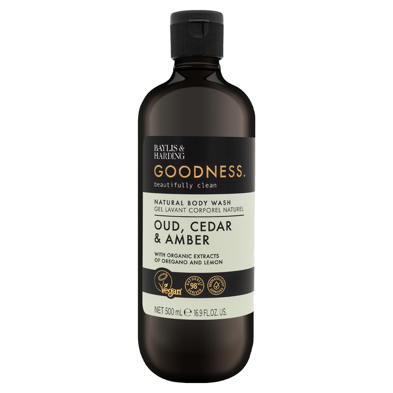 For a shower that bursts of spicy aromatic scents, this heady combination makes for a revitalising body wash Sublime & Sustainable Sublime self-care meets elevated formulations in this beautifully natural and sustainable collection. Lovingly made in England and kind to body, soul and planet, this premium edit is carefully composed using natural plant-based cleansers and luxurious essential oils for a truly holistic approach to beauty. Oud, Cedar & Amber- Richly decadent, woody and refreshingly aromatic. A blend of citrus fruits with herbal notes and strong woody undertones add depth to this fragrance from the new Goodness range