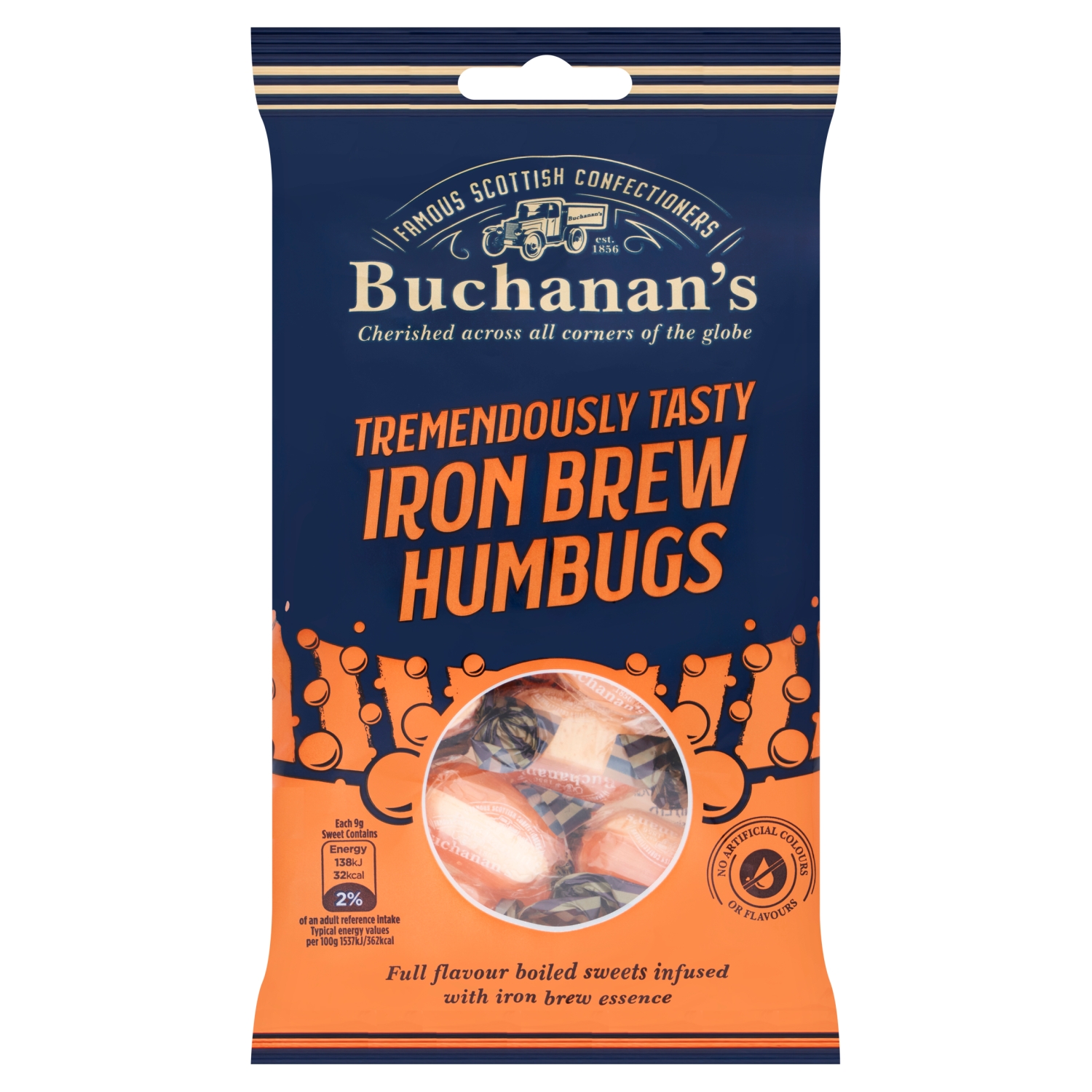Buchanan’s has put a twist on the traditional humbug. Their Tremendously Tasty Iron Brew Humbugs are individually wrapped, hard boiled sweets infused with iron brew essence. Made with no artificial colours and flavours and packed into a 140g bag which is perfect for sharing, it’s no wonder why Buchanan’s are cherished across all corners of the globe. Buchanan’s have been delighting generations for over 160 years with their award-winning toffees, fudge, hard boiled sweets, gums & jellies.