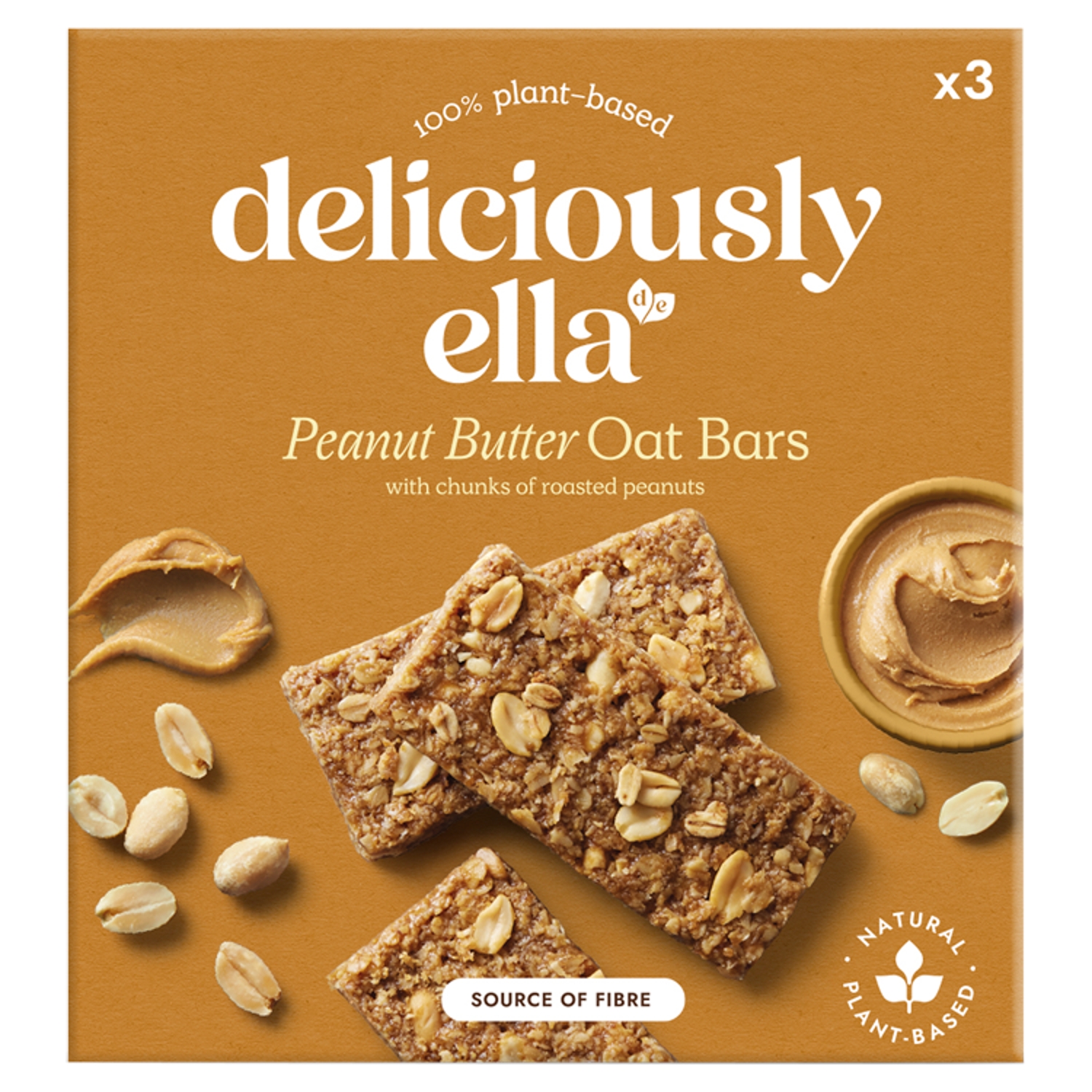 The Deliciously Ella Baked Oat Bar Peanut Butter is a vegan and gluten-free snack that combines creamy peanut butter, crunchy peanut pieces, and hearty gluten-free oats. It is baked in small batches and made with 100% natural ingredients.