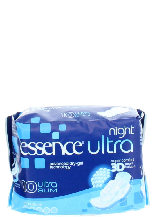 Essence Ultra Night Slim Sanitary Pads with Advanced Dry-Gel Technology for Night Protection – 10 Pack