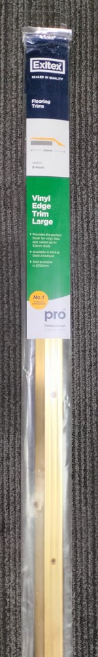 A large threshold transition strip designed to create a neat join between laminate or vinyl flooring sections or between different floor levels. It is useful for improving the finish at doorways, room transitions, and exposed flooring edges while also helping protect those edges from wear. The gold finish gives it a more decorative and polished appearance for visible flooring areas.