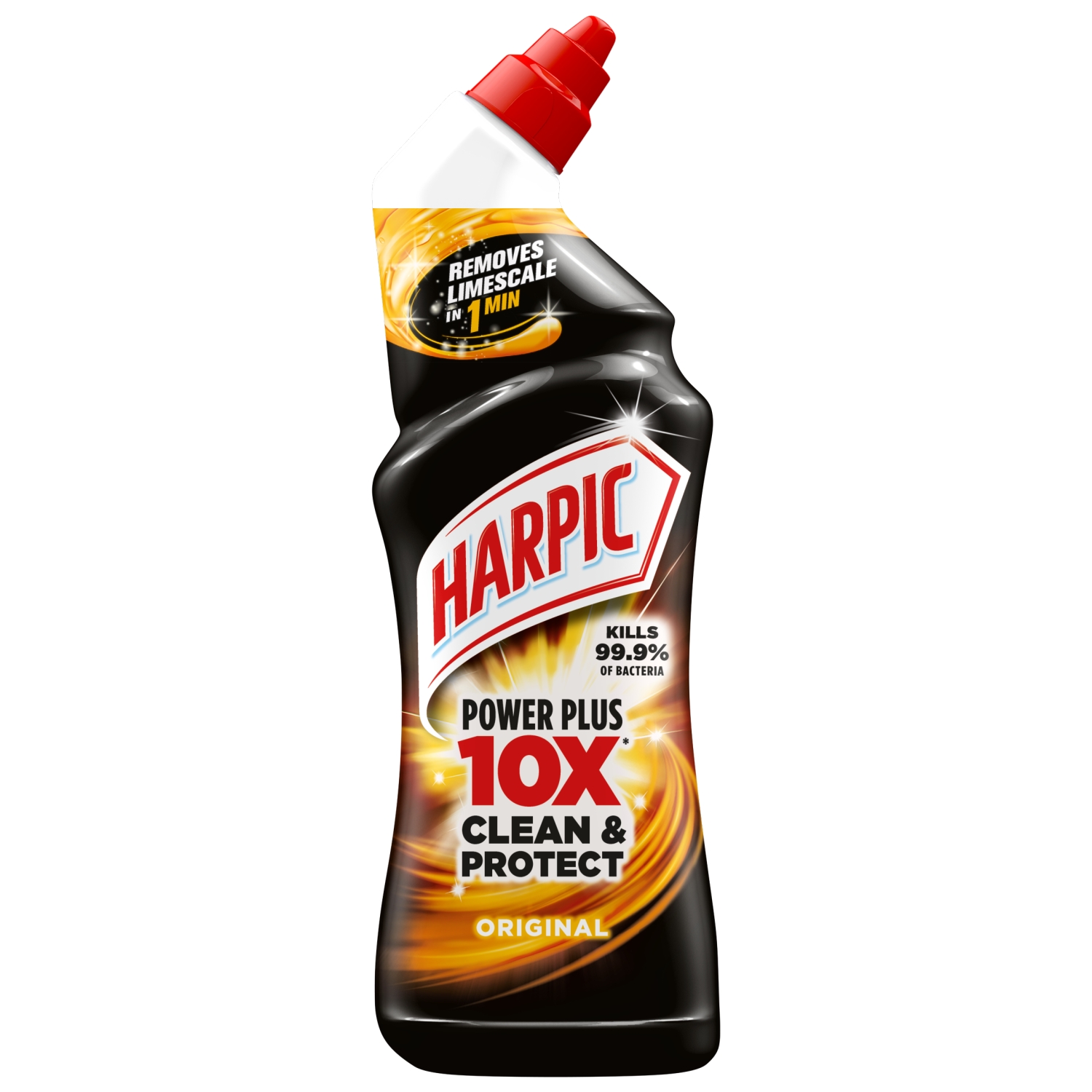 A thick, powerful toilet-cleaning gel that removes tough stains and limescale, clings firmly to the bowl (from rim to U-bend), and kills 99.9% of bacteria