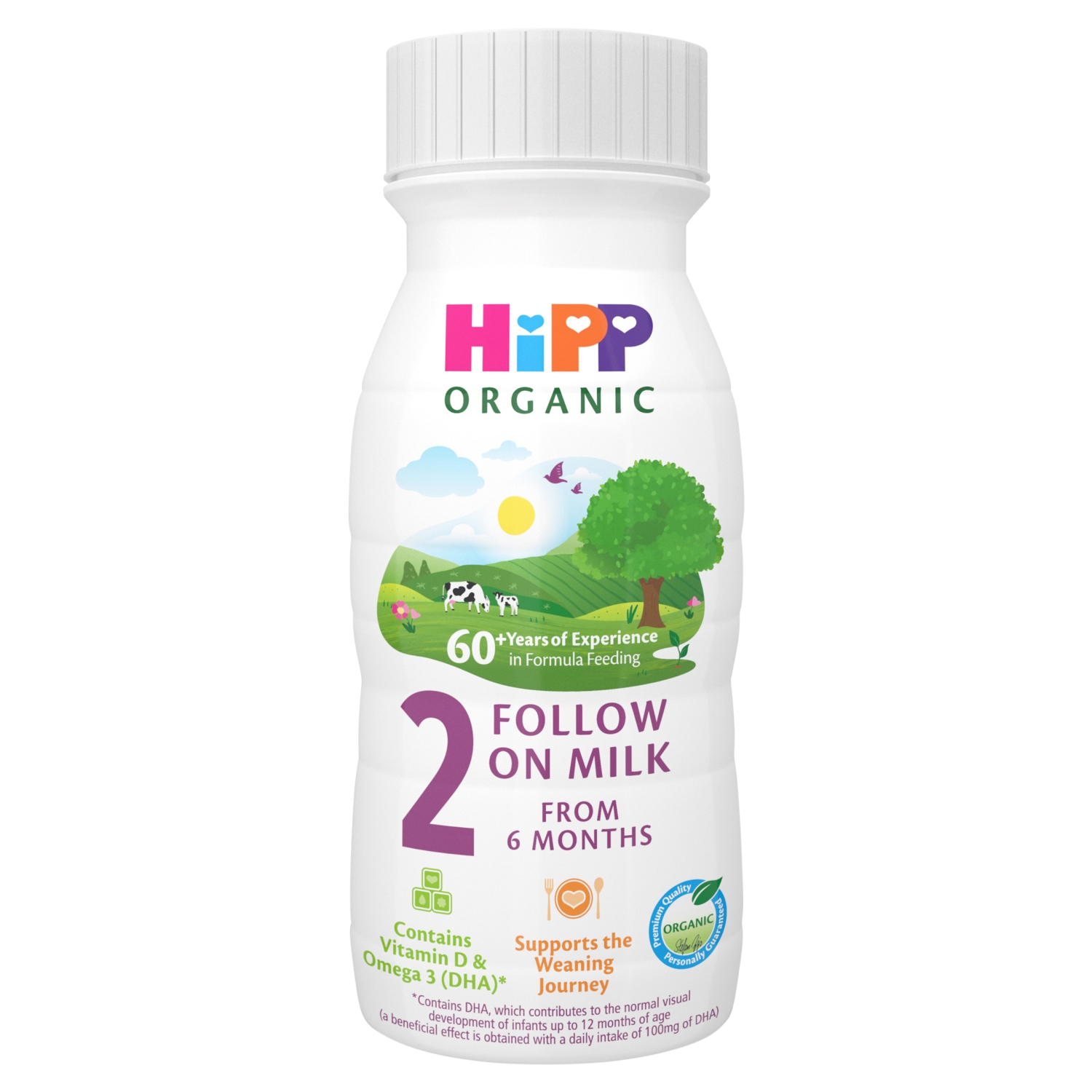 HiPP Organic 2 Follow On Baby Milk Ready to Feed Liquid Formula. Specially formulated using the finest organic ingredients, with organic GOS, and Vitamins C and D and Iron, which contribute to normal cognitive development. Suitable from 6 months, whether your baby is being combination or bottle-fed. Our range of follow on milk is based on over 55 years of breastmilk research and made from gentle organic ingredients (gentle because there are no pesticides used in the pastures where our cows graze). HiPP Organics Follow on Baby Milk Ready to Feed Liquid Formula is suitable to complement a varied weaning diet from 6 months onwards and comes in a handy recyclable bottle so it’s ready to use whenever your baby needs it. Stefan Hipp, one of the fourth-generation family owners of HiPP Organic, personally guarantees every product we make, just as his family has done for over 120 years. HiPP Organic quality is something particularly special and important to us. We don’t just meet EU organic standards. We exceed them. To achieve this, we work with nature rather than against it in a sustainable way that protects biodiversity – helping us to produce the best possible organic ingredients