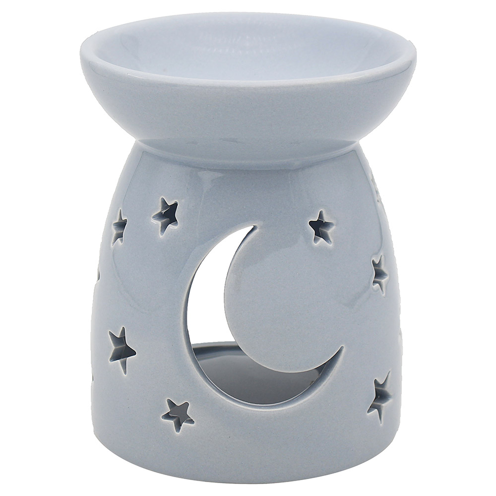 Crafted from high-quality ceramic in a modern grey finish, it complements a variety of home décor styles. Simply add your favorite wax melts or essential oils with water, place a tealight inside, and enjoy a soothing fragrance as the gentle light shines through the celestial design.