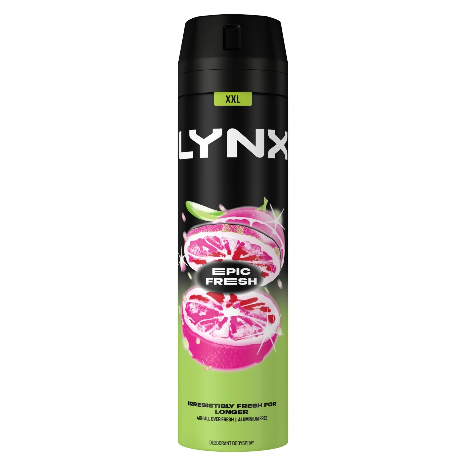 Take freshness to a whole new level with LYNX Epic Fresh Body Spray. You never know what’s around the corner. Or who. Featuring a vibrant grapefruit and tropical pineapple fragrance, LYNX Epic Fresh Bodyspray gives you 48 hours of odour protection with our revolutionary dual-action odour-busting zinc technology, keeping you smelling awesome and feeling chill, all day.