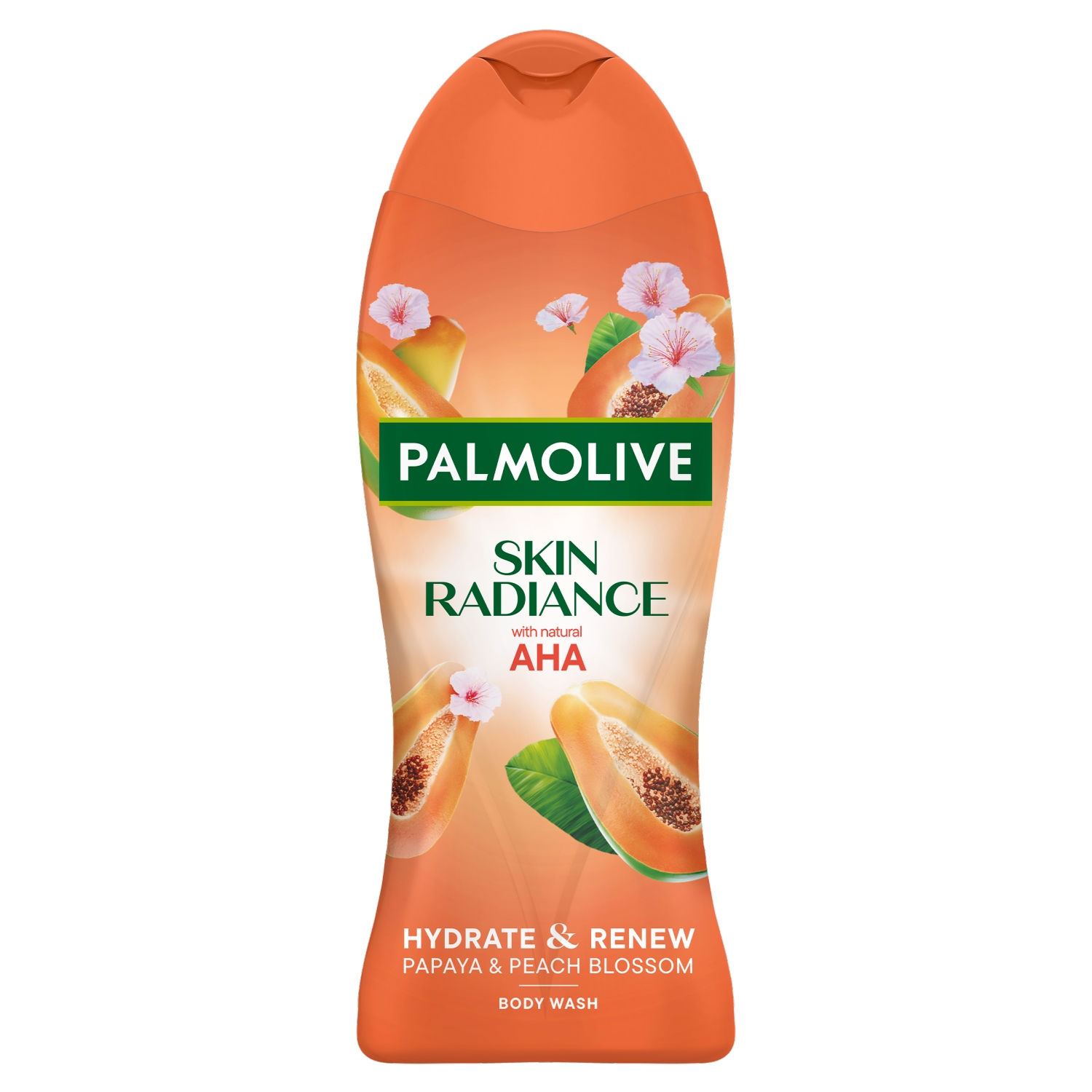 Palmolive Skin Radiance Papaya & Peach Body Wash is a brightening shower gel enriched with papaya extract and 100% natural AHA to gently exfoliate, remove dull skin, and reveal a fresh, radiant glow. Its formula includes hydrating glycerin to keep skin soft and smooth, while the uplifting papaya and peach blossom fragrance leaves you feeling refreshed after every wash. Crafted with 95% natural-origin ingredients and 98% biodegradable content, it offers a skin-loving and eco-friendly cleansing experience