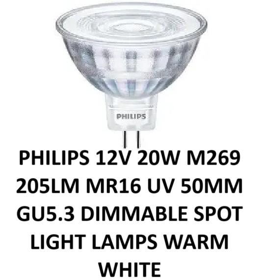 PHILIPS 12V 20W M269 205LM MR16 UV 50MM GU5.3 DIMMABLE SPOT LIGHT LAMPS WARM WHITE