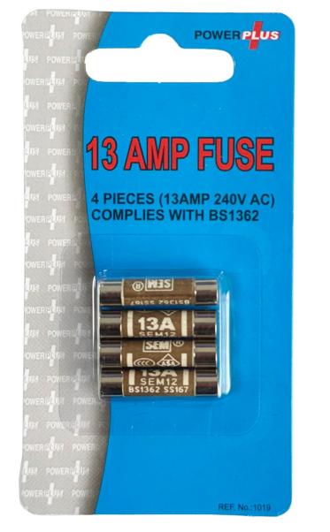 A pack of 13 amp fuses designed for replacing blown fuses in plugs and similar electrical fittings. These are useful for maintaining electrical safety and restoring the operation of suitable appliances or devices that use fused plugs. The pack of 4 provides convenient spare replacements for household or light commercial use.