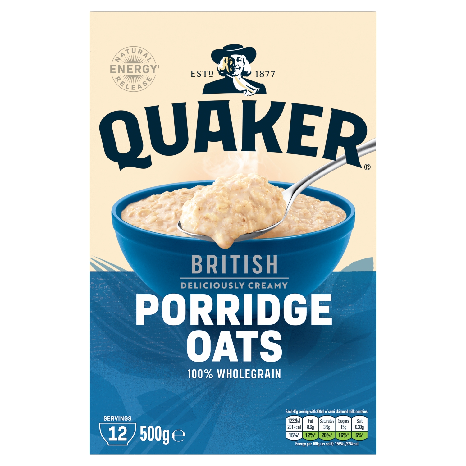 Quaker 100% Wholegrain Rolled Oats are a wholesome, nutritious choice for a healthy breakfast or snack. Made from 100% wholegrain oats, they offer a rich source of fiber and essential nutrients to start your day off right. These rolled oats are perfect for making a classic bowl of porridge, baking, or adding to smoothies and granola bars. With no added sugar or artificial ingredients, Quaker oats are a simple, natural option for anyone looking to eat cleaner and live healthier.