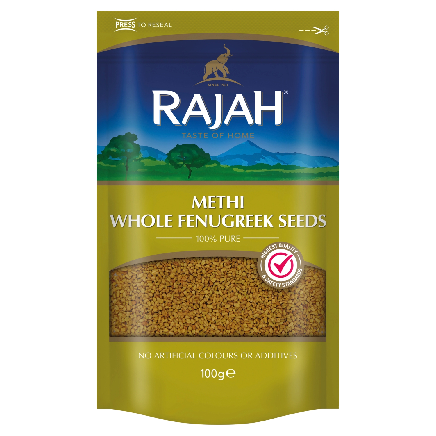 Rajah Fenugreek Seeds have a strong tangy bitter taste that can be ground, or roasted to add a range of flavour to a variety of dishes.