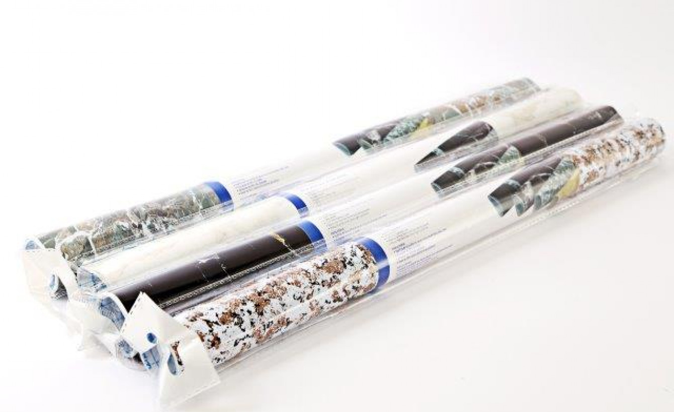 A self-adhesive decorative vinyl sheet designed to update and enhance surfaces with a marble-effect finish. It is useful for covering shelves, tables, cabinets, drawers, and other smooth surfaces during home décor or renovation projects. The adhesive backing makes it easy to apply, offering a simple and affordable way to improve appearance without major effort.