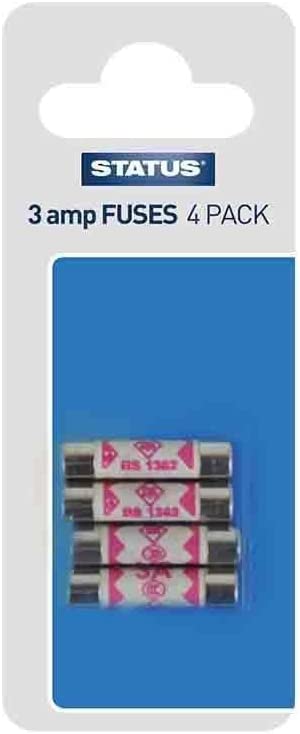 A pack of 3 amp fuses intended for use in suitable plugs and electrical accessories where lower-rated circuit protection is needed. They help protect connected devices and reduce the risk of overload in correctly matched applications. The pack provides four replacement fuses, making it useful for home electrical upkeep and spares.