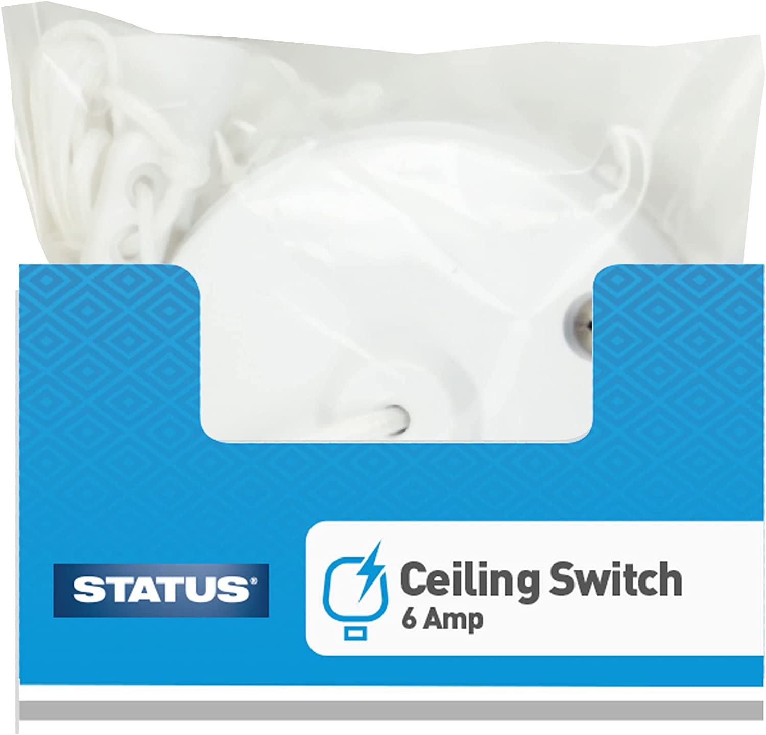 A 6 amp 2-way ceiling switch designed for controlling lighting circuits from more than one switch location in suitable setups. It is useful in stairways, larger rooms, or other installations where two-way control improves convenience. This fitting is practical for lighting replacement, new installations, or renovation work.