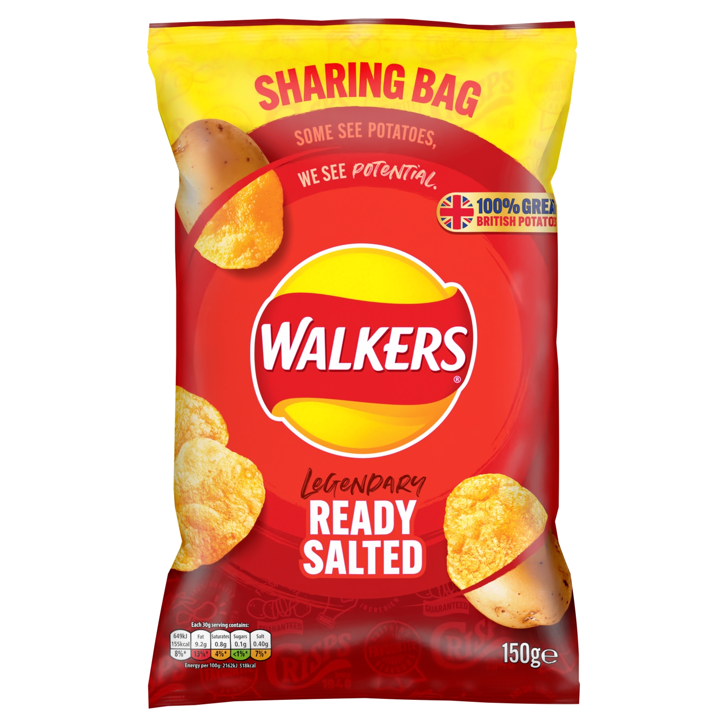 – Sharing bag of Walkers ready salted flavour crisps – Made with 100% Great British Potatoes – Fresh taste guaranteed – Perfect crisps for lunch and snacking – Suitable for vegetarians – No added MSG, Artificial Colours