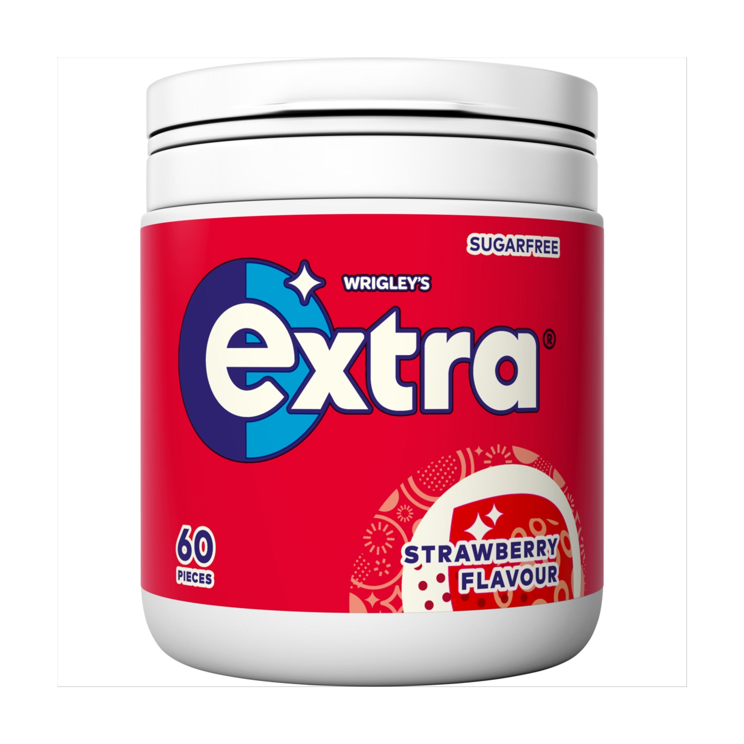 Wrigley’s Extra Strawberry gum comes in a large, convenient resealable bottle containing 60 pellets, with a net weight of 84g. It offers a sweet, fruity strawberry flavor that is both refreshing and long-lasting.